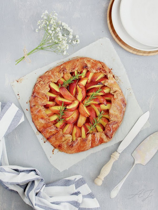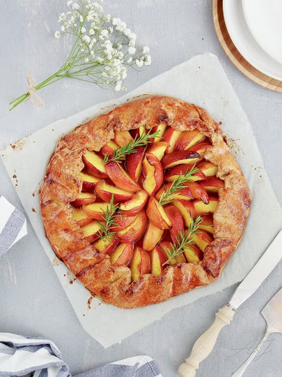 Cette Tarte rustique aux pêches a tout pour elle, de bons fruits gorgés de soleil et de sucre naturel, une pâte brisée croquante avec ce petit goût de noisettes apporté par la farine de petit épeautre, et des saveurs à nous transporter littéralement sous un olivier (pieds nus et chapeau de paille de préférence!) pour une dégustation en bonne et due forme.
