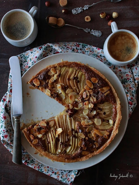 Eh bien cette Tarte aux poires, noisettes et chocolat fait partie de ces petites douceurs bien de saison.