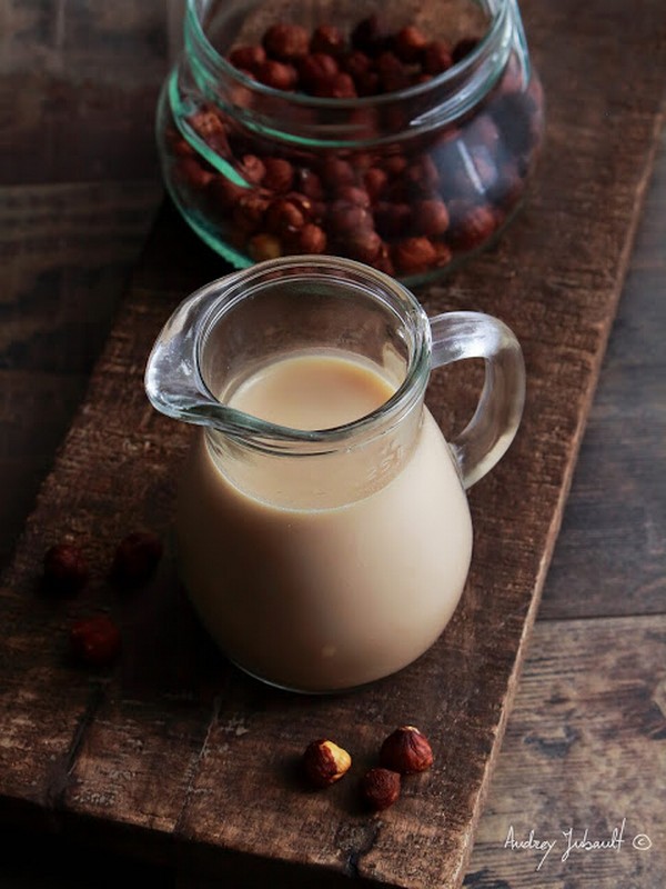 Un bon verre de boisson végétale à base de noisettes et d'amandes grillées comme je les aime.