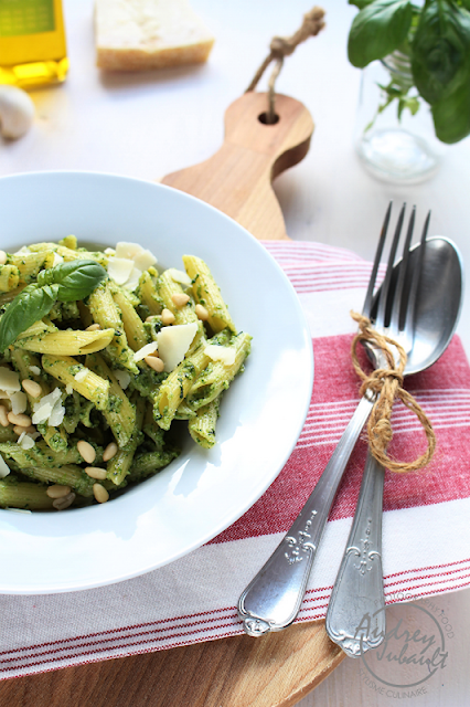 Un bon plat de {Penne au Pesto de Roquette- Epinards} pour nous régaler en famille.