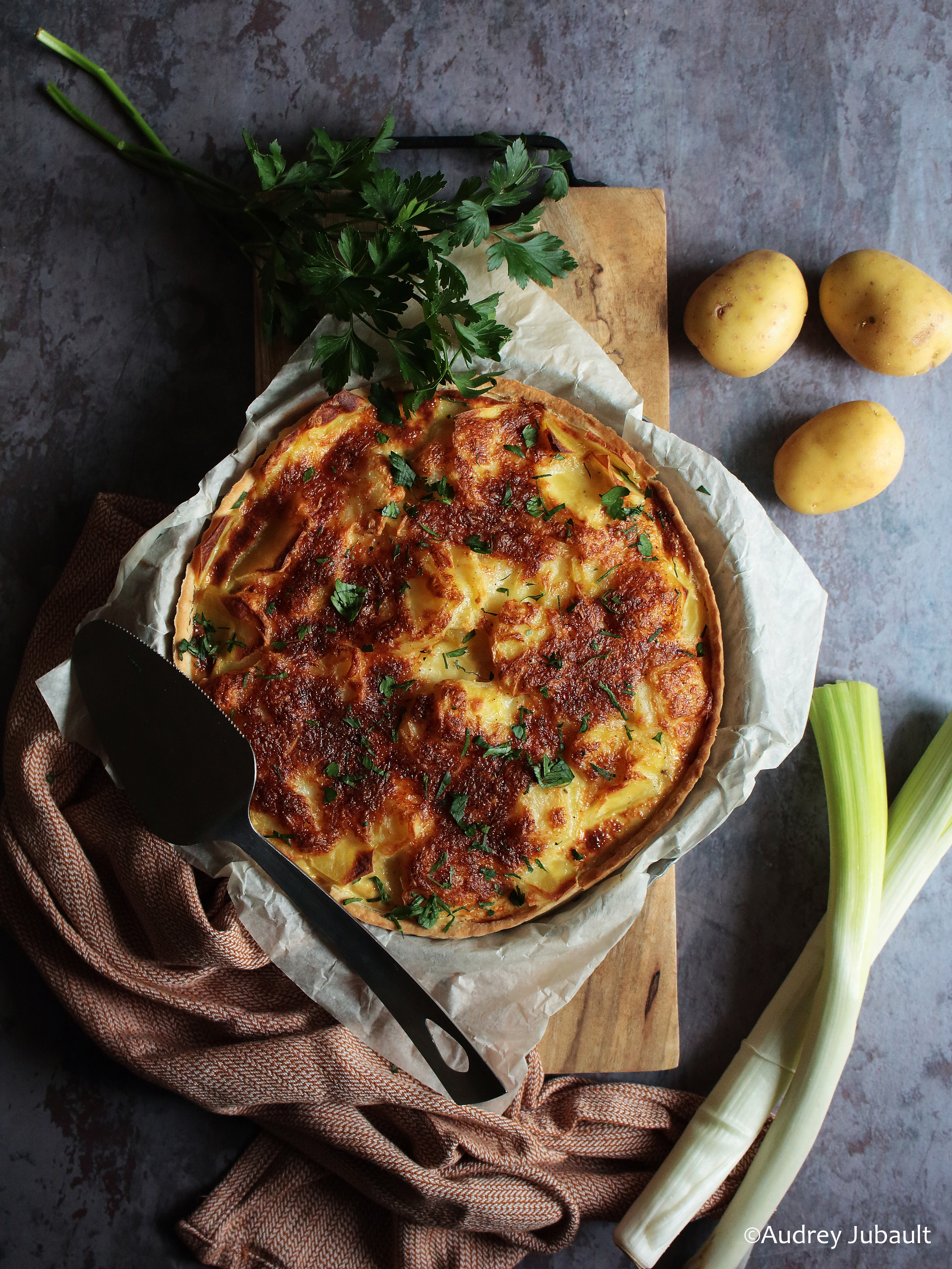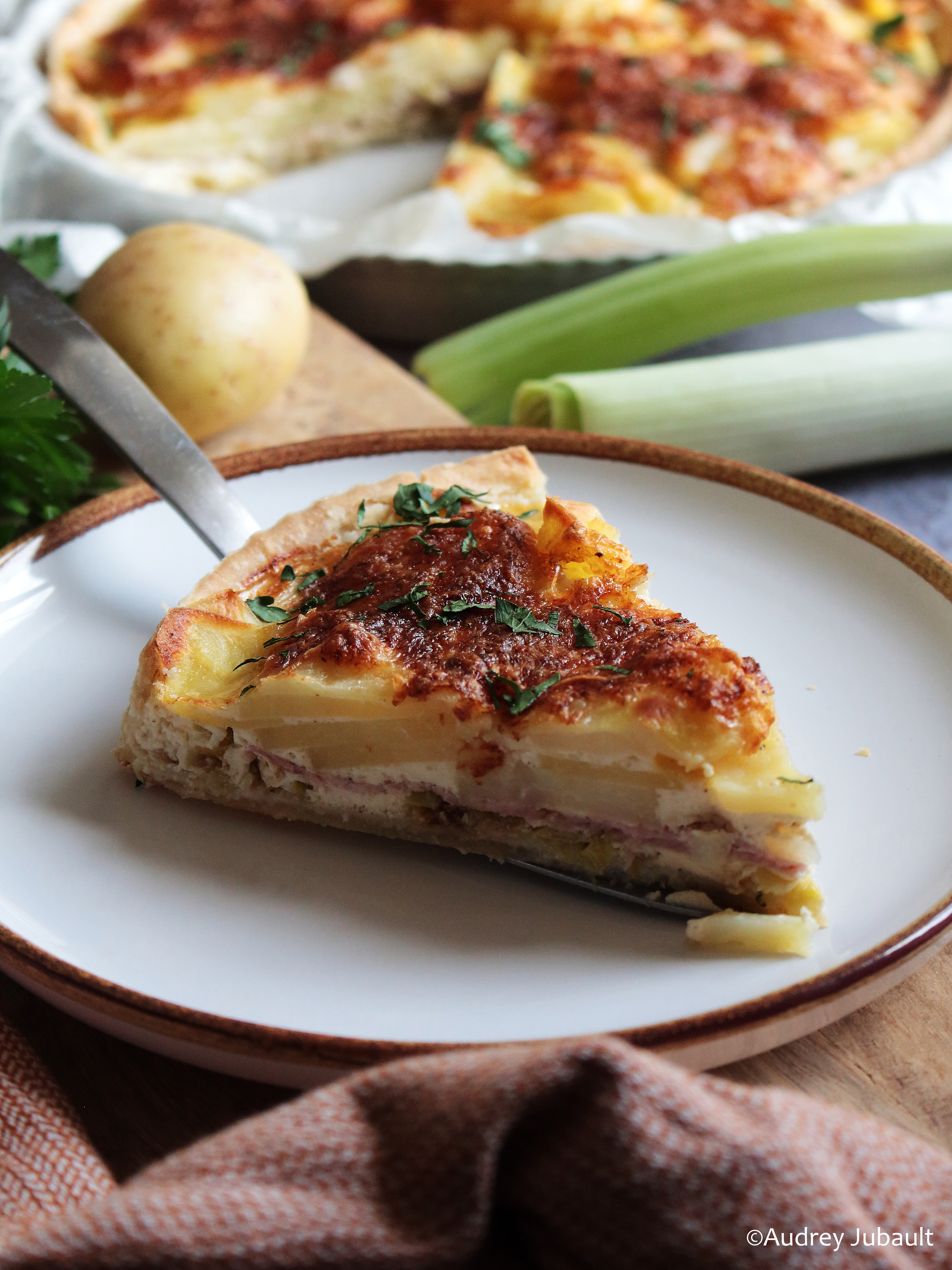 Voici une recette que vous allez adorer: la Quiche aux poireaux, pommes de terre, jambon et comté.