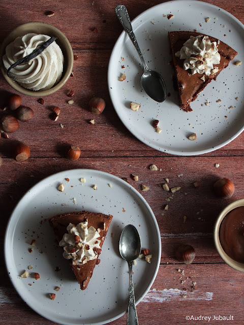 L'hiver est propice aux recettes gourmandes et cocooning ... et ce fondant au chocolat, noisettes et crème de marrons en fait bien partie.