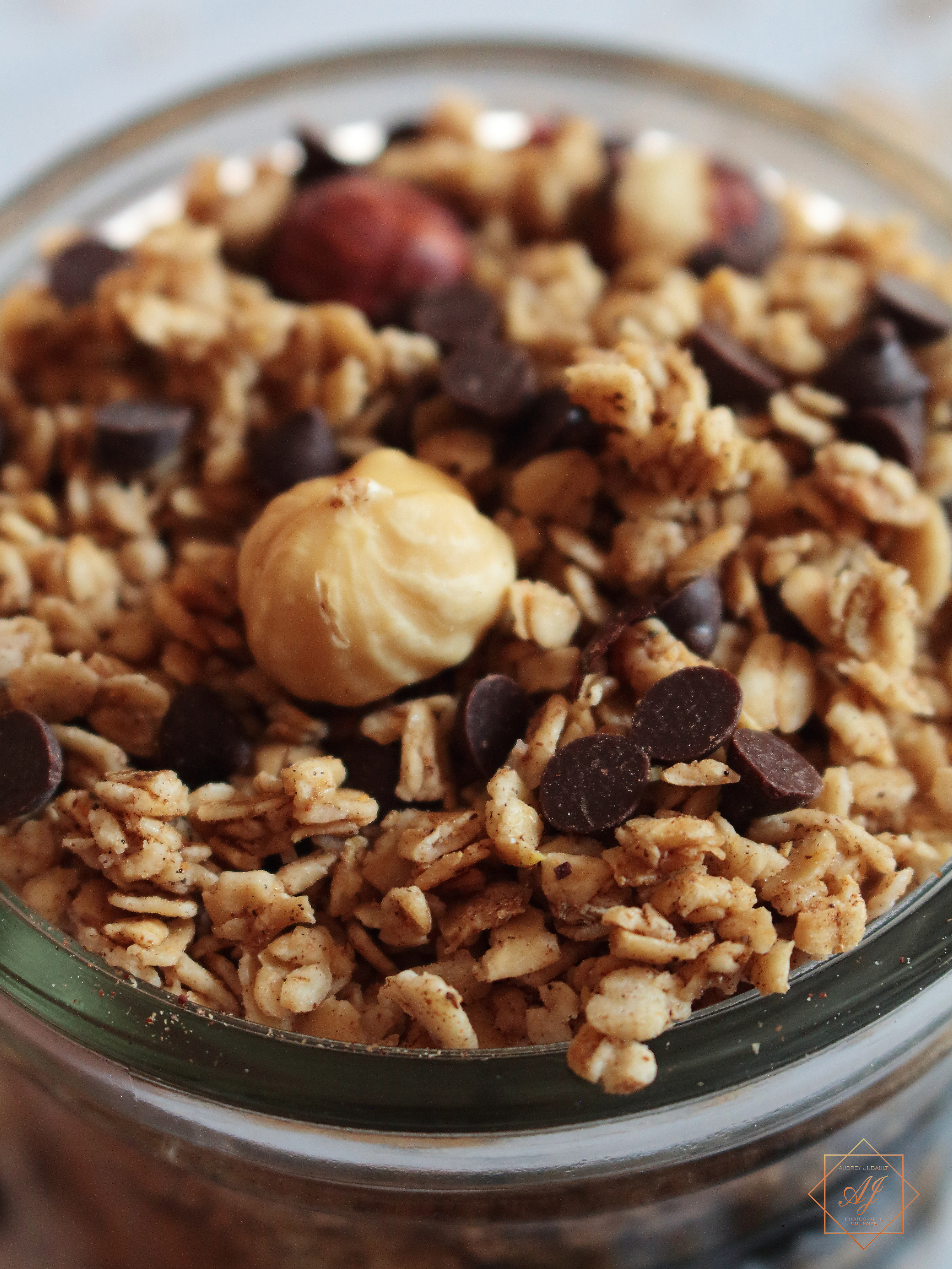 - Ajouter ensuite les pépites de chocolat et réserver dans un grand bocal en verre.