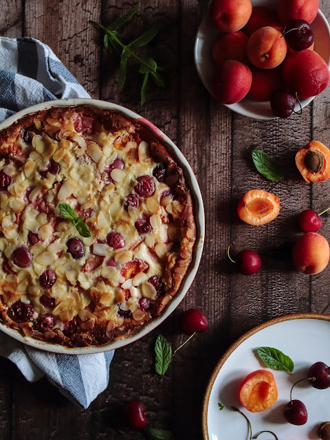 CLAFOUTIS AUX ABRICOTS ET CERISES