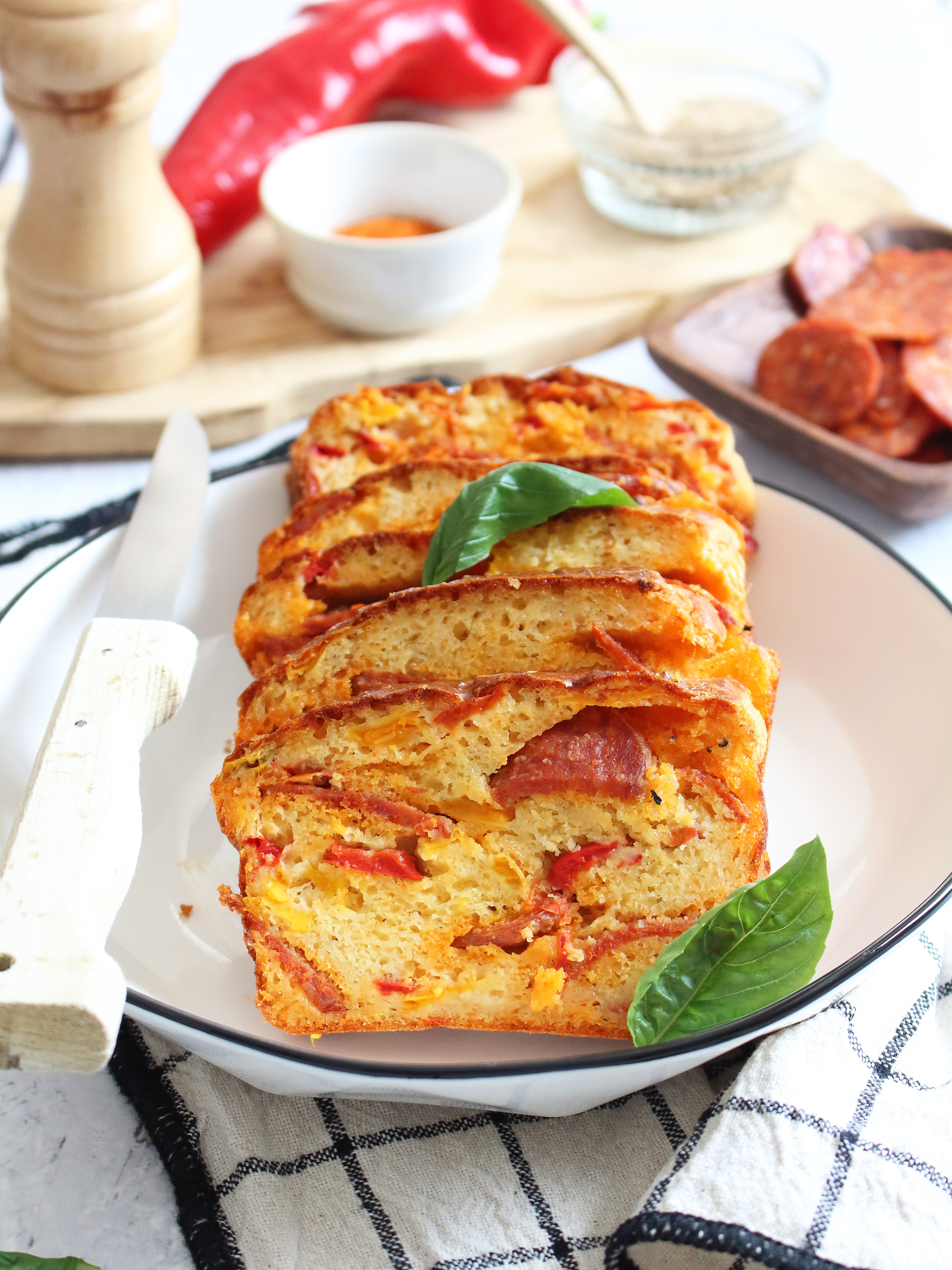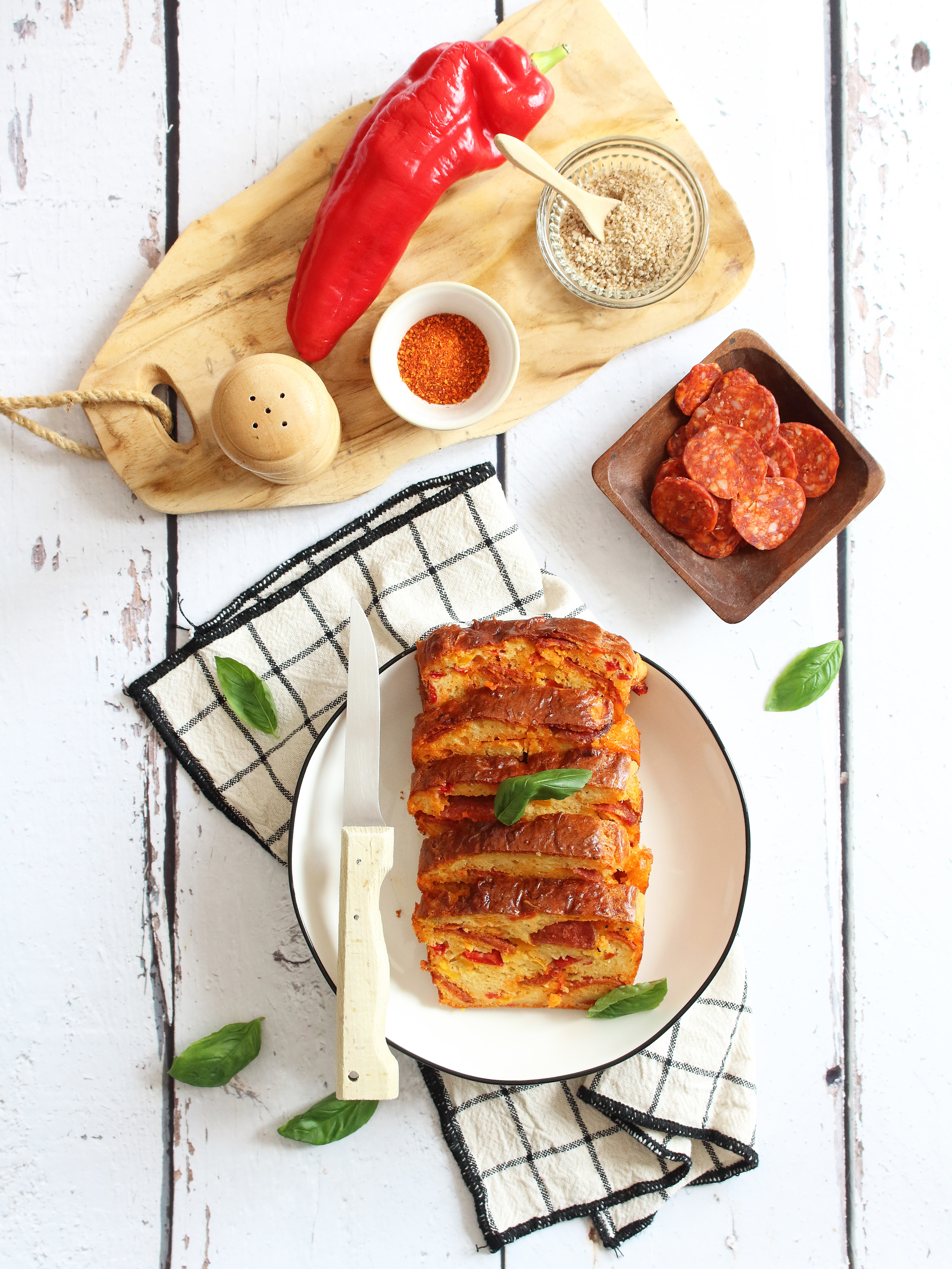 CAKE "OLÉ-OLÉ" AUX POIVRONS GRILLÉS, CHORIZO ET PIMENT D'ESPELETTE