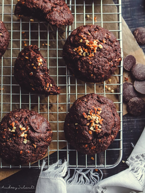 Qui aime le chocolat et les cookies me suive ! Cette recette est une gourmandise de plus que j'affiche à mon palmarès et qui a eu une nouvelle fois un succès gourmandissime.