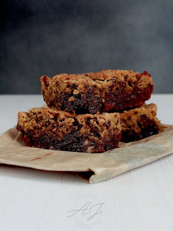 Comme sur la photo, on voit bien la couche de cookies au-dessus et ensuite la couche de brownie et franchement c'est à se taper les fesses par terre tellement c'est bon.